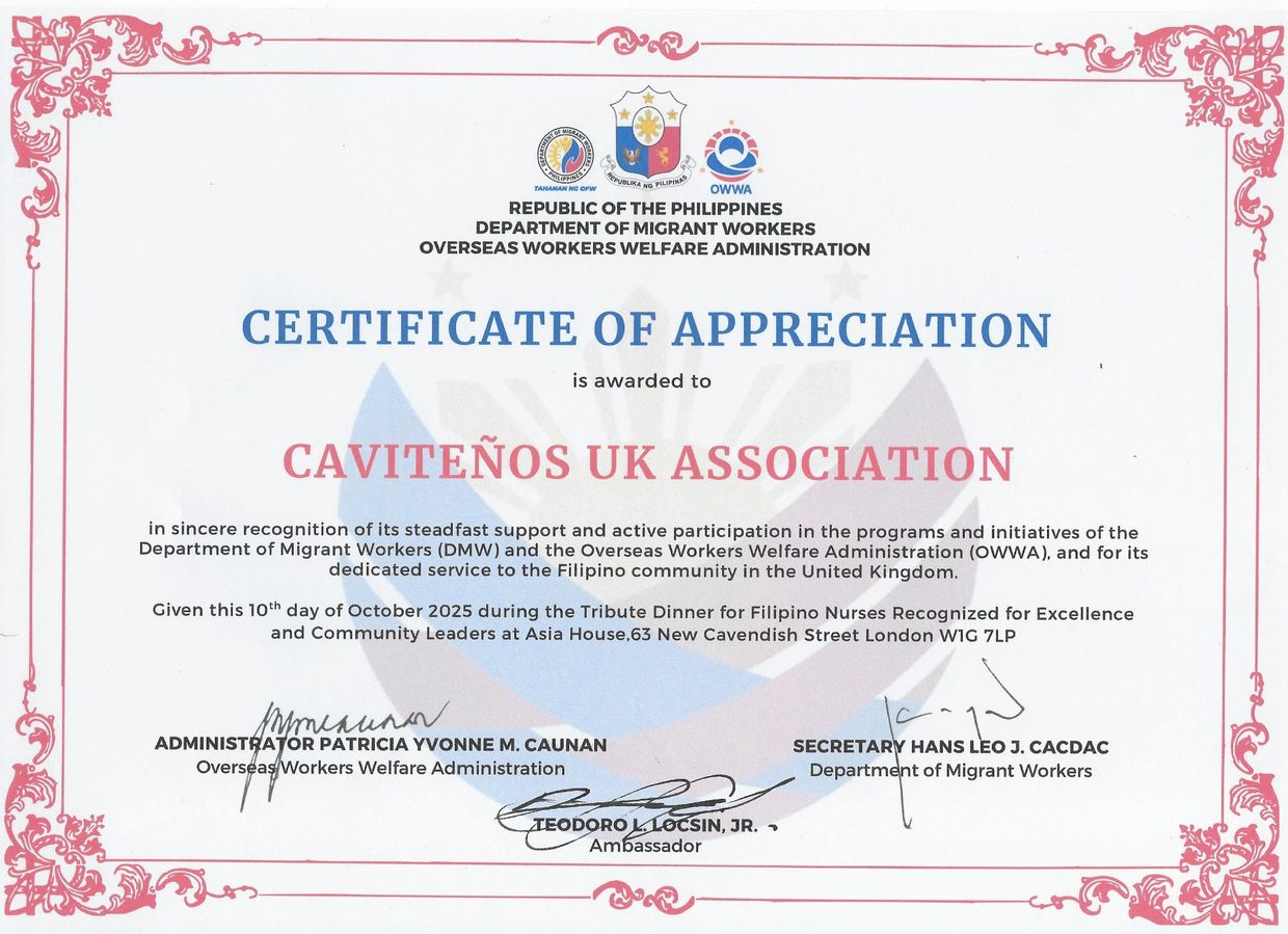Cavitenos UK Association is a charity group based in London who seek to provide aid to the UK’s Filipino diaspora. Founded in 2012, Cavitenos UK Association have been privileged to empower and foster integration in its local community. The first Philippine flag was raised in Cavite on June 12th 1898, thus our organisation’s custom to spearhead Philippines’ Independence Day in the United Kingdom.